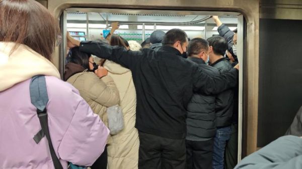2023年11月29日,他和朋友去到十号线双井站,亲眼见证了东三环早高峰的恐怖。他回忆道,当时车门一打开,外边的乘客就蜂拥而上;好不容易下了车,站台上也人满为患、无从落足;想去站厅看看,却在站厅遇上了车站限流,通道里的人塞得密密麻麻;等待十分钟后,他们终于回到了站台,面对两分钟就有一趟的发车间隔,他们却足足等了七趟才顺利挤上车。