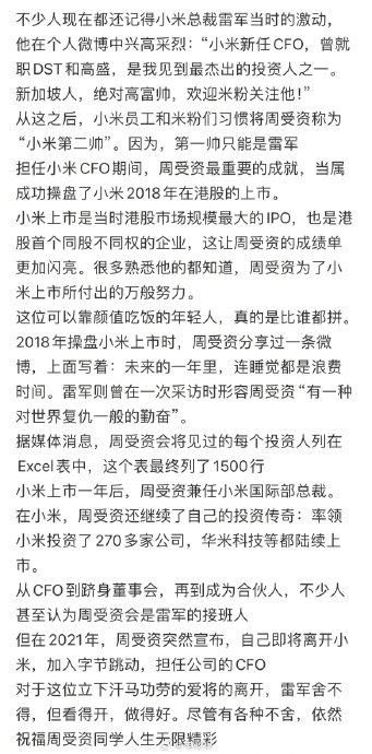 从小米跳槽到字节的周受资,与历史进程中的CFO