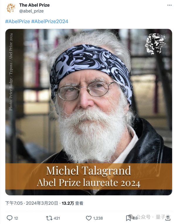 有着“数学诺贝尔奖”之称、与菲尔兹奖齐名的阿贝尔奖,今年颁给了72岁法国数学家米歇尔·塔拉格兰(Michel Talagrand)——酷酷的朋克大爷,还有一个传奇又有趣的灵魂。