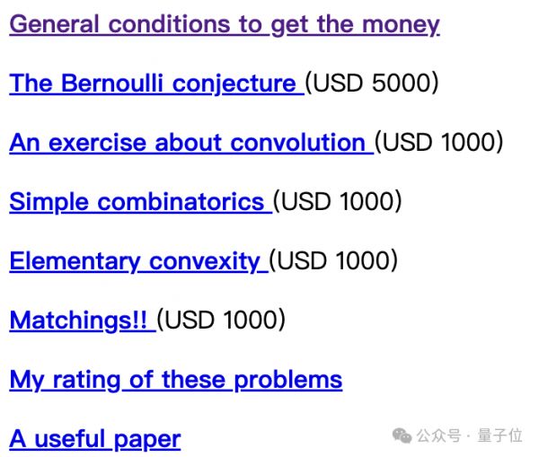 上面列出了很多数学难题,只要能够解答出来,并让他看懂,他就会把他过往获得的奖金拿出去一部分作为悬赏:1000-5000美元不等。