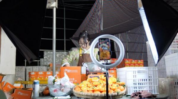 ▲在“中国桔橙之乡”丹棱,曾夺得当地不知火技术大比武“果王”称号的赵刚入驻拼多多后,借助直播将优质桔橙卖向全国各地。赵烨▕摄