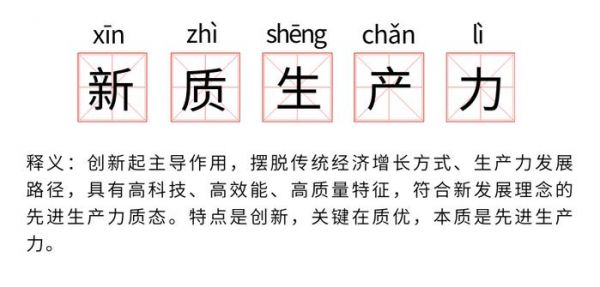 何为新质生产力?概括地说,是指创新起主导作用,摆脱传统经济增长方式、生产力发展路径,具有高科技、高效能、高质量特征,符合新发展理念的先进生产力质态。特点是创新,关键在质优,本质是先进生产力。