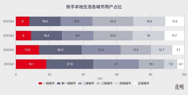 回溯来看,2023 年 2 月快手才陆续在哈尔滨、青岛等地开启本地生活业务的城市验证。彼时,快手本地生活青岛负责人向虎嗅透露,“青岛是快手生态较典型的中间端城市代表,开城一个月就做了 500 万 GMV,青岛模式具备极大的可复制性”——此后 10 个月,快手本地业务的齿轮咬合越发紧密,重点运营城市扩张至 16 个、代理商服务城市接近 50 个。