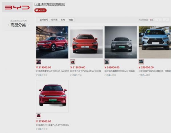 不久前,比亚迪京东自营旗舰店上线,上架了5款车型。汽车的配送以及售后服务都由京东指定的厂家来完成,并且支持7天无理由退货。