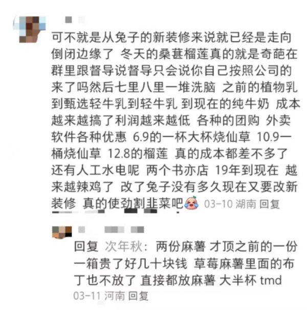 他们也会期待,书亦烧仙草品牌方能有“可持续性的竭泽而渔”的意识,自己吃肉,也能让加盟商喝点汤。