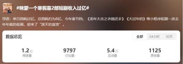 咪蒙凭借两部短剧收入过亿,爆款短剧编剧月入超10万,甚至连许久不曾露面的周星驰都要来分一杯羹,今年打算拍短剧了。