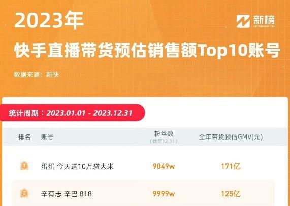 在新榜发布的2023年快手直播带货预估销售额Top10账号,排名前三的都来自辛选。辛巴只需要在超级年货节、38妇女节、双11等重要的促销节点出现就完全够用了。像今年开年到现在,他的第一场直播带货就在3月份,虽然时间间隔很久,但单场销售额依然有5.4亿。