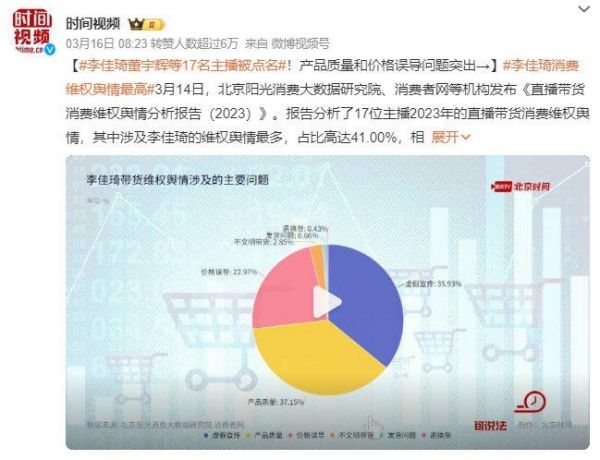 据多家机构联合发布《直播带货消费维权舆情分析报告(2023)》显示,“头部主播们”在消费维权舆情的占比中,遥遥领先。