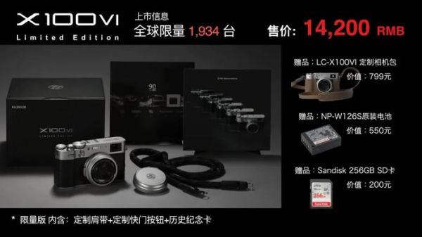 3月22日消息,富士X100VI相机90周年限量版将在国内发售,全球限量1934台,售价为14200元。而国内则限量265台,且采取预约抽签制的方式购买。