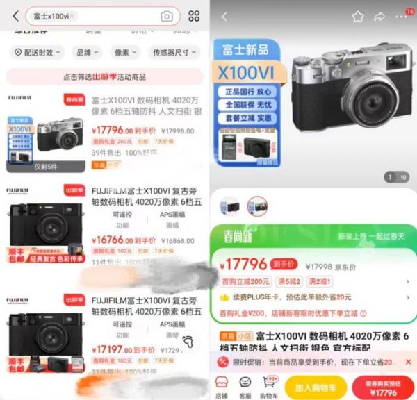 虽然富士X100VI的官方售价为11390元,但市场上的售价已飙升至约一万七,溢价高达6000元以上。可想而知,届时限量版本的富士X100VI的加价情况会有多离谱了。