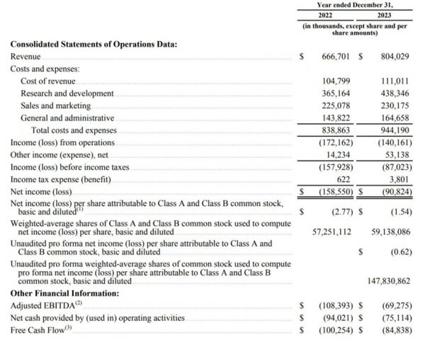 招股书显示,2022年、2023年,Reddit收入分别为6.67亿美元、8.04亿美元,还不到推特退市前一个季度的收入,只有微博全年的一半左右。在成立近20年后,这家内容平台仍处在亏损状态,2022年、2023年净亏损分别为1.59亿美元、9082万美元。事实上不止这两年,Reddit成立19年以来压根就没盈利过。