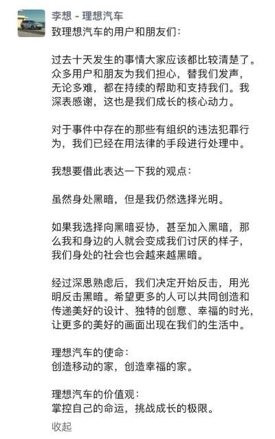 图片来源:李想朋友圈截图3月11日,在首批理想MEGA正式交付当日,理想汽车CEO李想在朋友圈发文回应称,对于事件中存在的那些有组织的违法犯罪行为,理想已经在用法律的手段进行处理。