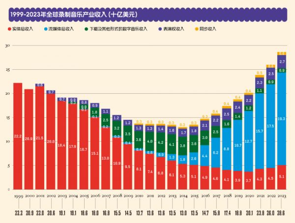 2023年的全球音乐产业成绩单出炉,其中有几个历史性的数字。