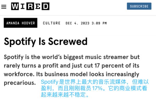 Spotify也早就宣布过他们不是音乐平台(Music Platform),是音频平台(Audio Platform),并通过加强播客内容的投资来拉新和增收。然而,在2023年,迫于现金流的压力,Spotify不得不收缩战线,取消了一些曾经投入重金的原创播客内容。