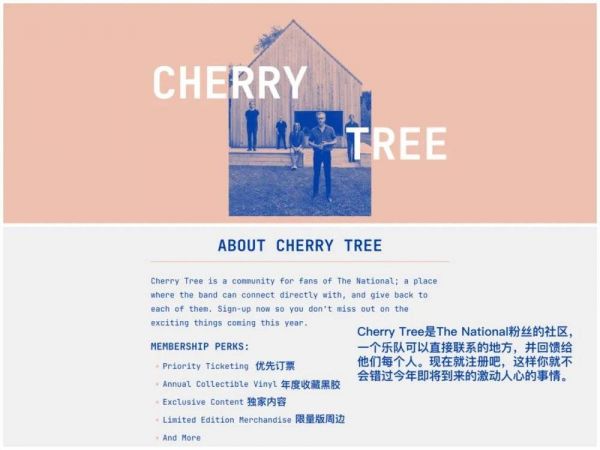 除了主流歌手,一些有远见的独立音乐人已经开始在平台之外培养自己的粉丝社群。The National的粉丝俱乐部Cherry Tree就是一个很好的案例,通过Cherry Tree,The National和粉丝之间建立了一个价值远远超出音乐平台或社交媒体的关系。