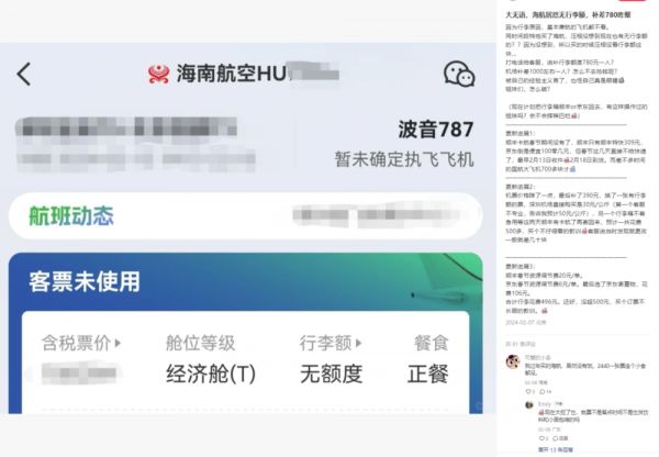 与之类似,海南航空“轻松飞”机票也无托运行李额度,机场补差价1000元左右一人,这个妹子本来考虑顺丰特快309元邮回家,恰逢春节快递休假,只好含泪“买个订票不长眼的教训”。