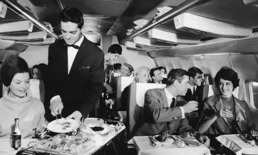 再比方说,1967年汉莎航空航班上的午餐是论道上的,菜单通常包括多道菜、面包篮和牛排甚至龙虾等菜肴,和今天的经济舱盒饭那是天壤之别。