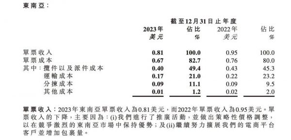 极兔在财报中也做此解释:单票收入的下降主要由于“我们进行了推广活动,并做出策略性价格调整,以在竞争激烈的东南亚市场中保持优势。”