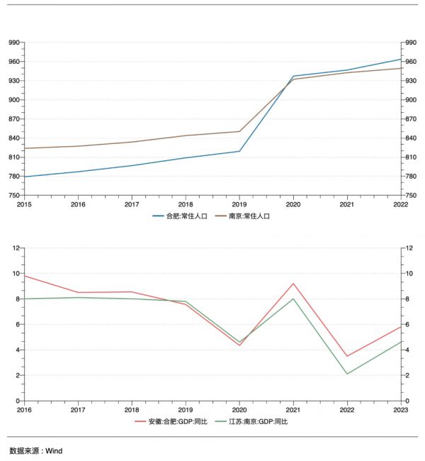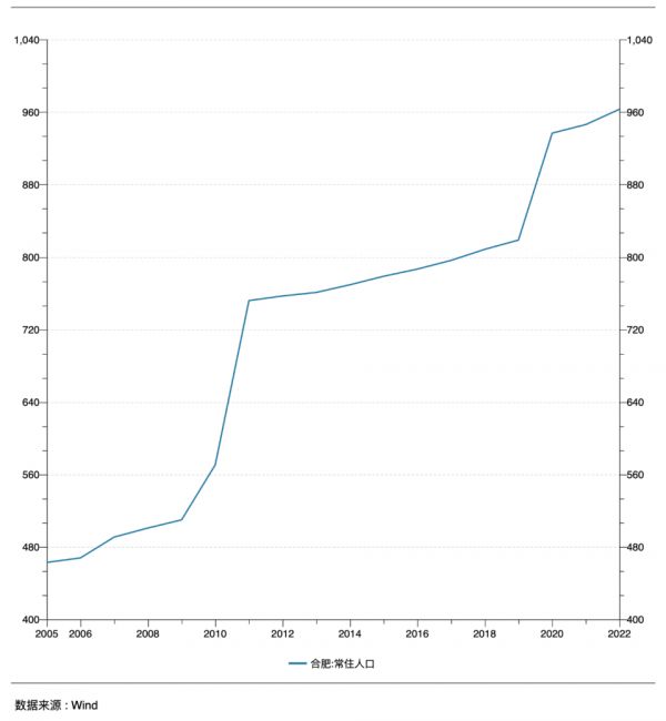 △ “拆分巢湖”后,合肥常住人口迎来跨越式增长。(图源:Wind)