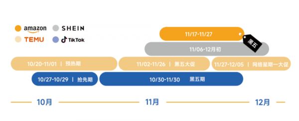 2023年美国“黑五”促销季,主要电商平台促销周期对比