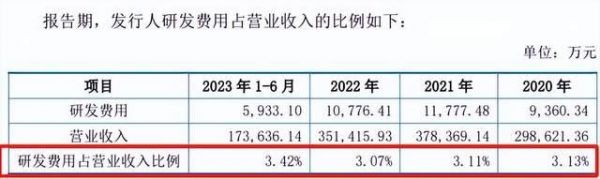 根据招股书,报告期内,超颖电子研发费用分别为0.94亿元、1.18亿元、1.08亿元、0.59亿元,研发费用率分别为3.13%、3.11%、3.07%、3.42%,均未超过3.5%;而同行可比公司均值分别为4.37%、4.49%、4.71%、5.36%。