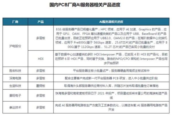 目前,许多国产PCB厂商也在迎合新兴技术趋势,打造产品,如崇达技术已完成AI服务器用电路板生产方案及工艺参数优化。而超颖电子也在朝着多元化发展道路迈进,在弯折板、高多层板、高密度连结板、高频板、厚铜板等多种产品类型上均有产线,除了汽车电子外,也在网路通讯及服务器、显示面板、储存装置等领域寻求市场份额。