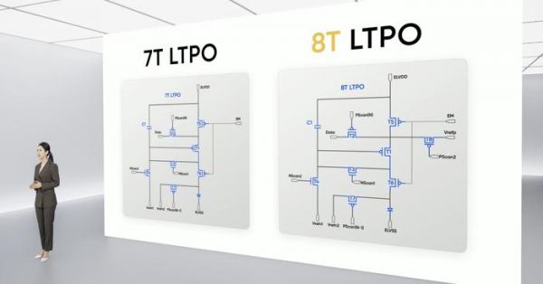 除了超高亮度,真我新款无双屏的另外一大技术特性是LTPO。新款无双屏采用了8T LTPO技术,相比市面上常见的7T LTPO,8T LTPO多一组处理电路,因而刷新率变化过渡更加平滑、综合功耗更低、残影显示时间更短。