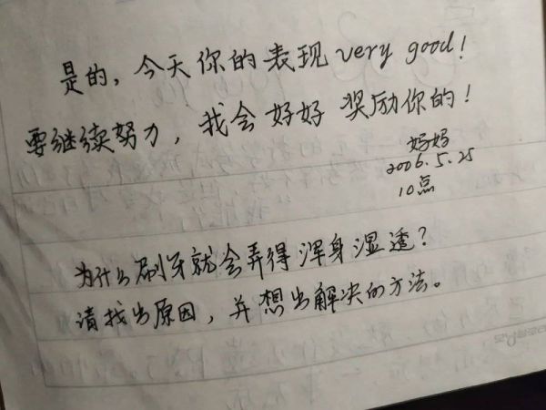 帮她写作业其实就跟作文班的事一样,最重要的不是说怎么决定,是找到相应的决策的依据。我会判断哪些学科她比较薄弱,比如数学我不帮你,抄抄写写的,我来帮你弄。我觉得让一个小孩抄写这么多东西这个方法不好,再加上她小时候比较认真,手脚慢,写一个字,比如写“中”,最后一竖大家都突突突写过去不就完了,她中间这竖要写不正会擦了重写,她不管有多少作业都这样搞。我又不能说这是她的“坏习惯”你懂吧,所以只能忍着。我当时看书说,晚上9点后是小孩生育激素分泌最多的时候,她要长身体,你让她这么晚睡觉怎么行?没办法我就模仿她的笔记写一下。