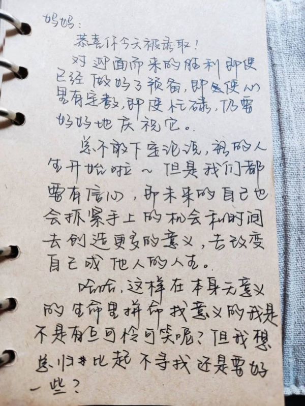 然后到某一页后没有了,戛然而止,后面的日子好像没有值得写下来的东西。我妈和我不一样,她温吞、随遇而安,我没见过她愤怒的时候,好像也没有非达到什么高度不可的野心,包括钱。但我记得有段时间她说读古诗感受不到回响、震荡的美感了。