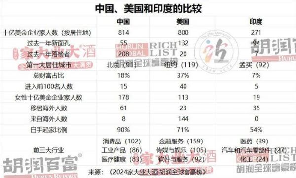虽然减少了 155 位十亿美金企业家,但中国仍是世界上十亿美金企业家最多的国家,有 814 位。美国紧随其后,有 800 位,增加了 109 位。中国和美国拥有世界上 49% 的已知十亿美金企业家,比去年减少 4%。