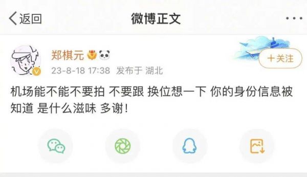 当演员变为明星,追随者群体从“观众”变为“粉丝”,就有越来越多人不满足于台上台下的距离。不缺席演员上下班的全过程,成为越来越多粉丝的必修课。更有甚者,会在演出结束之后跟着演员上地铁,或特地与演员乘坐同一列交通工具。这既干扰了正常的公共秩序,也给演员本人都带来了极大的困扰,知名音乐剧演员郑棋元就曾在微博多次表示对机场跟拍的不满。