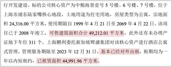 就拿上海邕鹏实业入手的中粮海景壹号三栋酒店公寓为例,租期均为一年以内短租约,入住率保持在90%以上,如此核心的区位,如此的出租率,且公告中指出项目增值额为34亿,增值率465.13%。