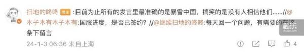 暴雪中国的回应并未平复外界的传言,有网友在张栋的微博评论中提问:“国服进度,是否已签约?”张栋的回答是:“目前为止所有的发言里最准确的是暴雪中国,搞笑的是没有人相信他们……”