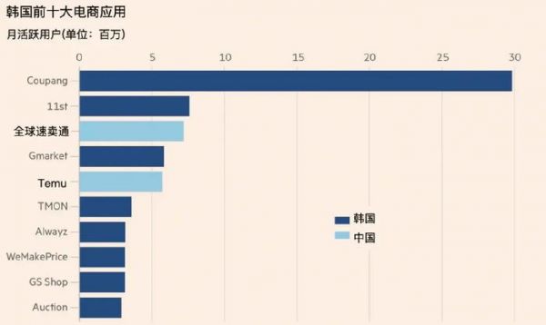 去年,全球速卖通和拼多多跨境电商平台Temu成为增长最快的韩国消费者在线零售平台,但仍落后于韩国电商霸主Coupang。尽管Coupang把总部设在了美国并在那里上市,但它是一家韩国公司。