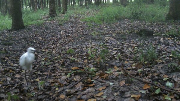 上海青浦,树林里的白鹭。受访者提供,由红外相机拍摄。