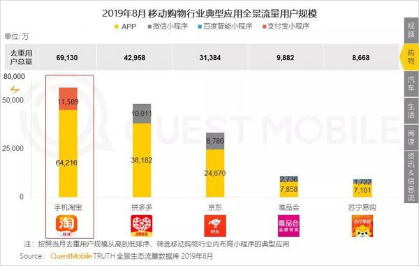手机淘宝全景用户规模6.91亿 拼多多4.29亿紧随其后