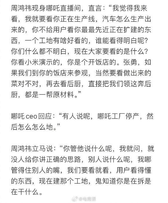 周鸿祎批哪吒CEO,什么都不明白,能不能学学雷军,要展示用户看得懂的东西。