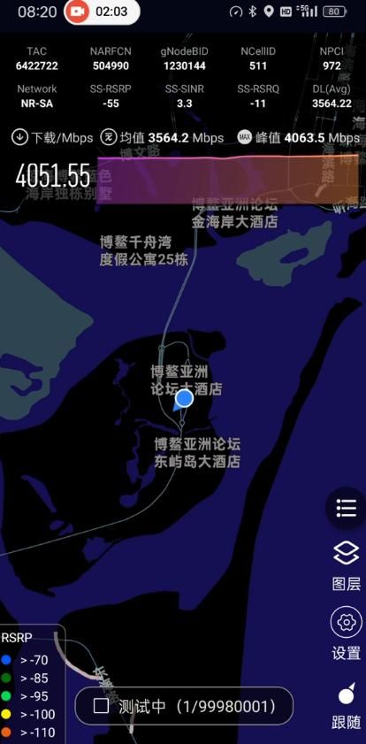 博鳌第一现场丨博鳌东屿岛5.5G网络比5G下载速率快近四倍