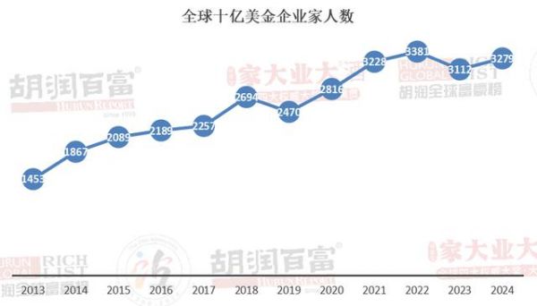 榜单显示,以截至2024年1月15日计算财富,来自73个国家的3279位十亿美元企业家上榜,高于去年的3112位。