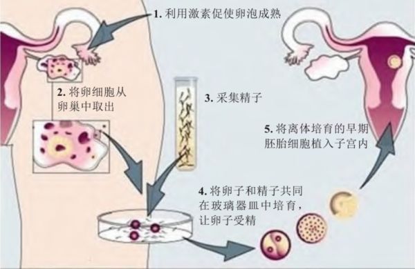常规试管婴儿技术的基本步骤。图片修改自http://www.aasthahealthcare.com/2Fertility-Center.htm#InvitrofertilizationIVF