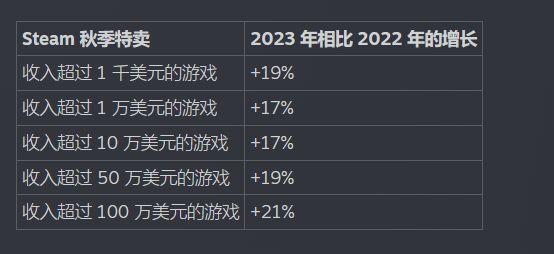 尽管Valve并非上市公司,我们无法通过财报来窥探它的收入结构,但2023 年,Steam曾宣布同时在线用户首次突破了3,300 万,同时在秋季特卖上,2023年和2022年相比都有着近乎20%左右的增长。