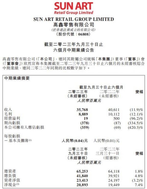 高鑫零售2024财年中期报告 图源:高鑫零售公告