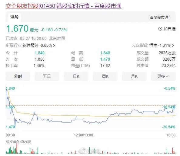 比如说,交个朋友在资本市场的表现就显得不那么令人满意。财报公布后,交个朋友颇有一种业绩向上,股价向下的意味。2024年3月27日港股收盘,交个朋友控股股价大跌,跌幅9.73%,收1.670港元/股,最新市值21.37亿人民币。