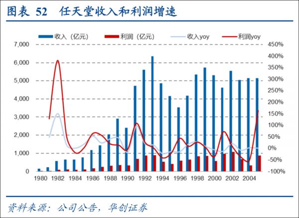 游戏行业,1983年任天堂发售第一款红白机,1989年推出Game Boy,索尼在1994年推出PlayStation,游戏市场迎来黄金年代,诞生了日后响彻世界的《超级马里奥》《塞尔达传说》《宝可梦》等经典 IP,而动漫和游戏两者互相依托,日本漫画在此期间也迎来腾飞之路,《海贼王》《火影忍者》《数码宝贝》《名侦探柯南》均是在90年代开始连载,动漫游戏行业迎来井喷式发展。