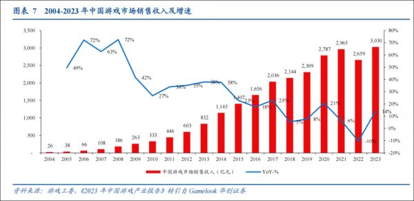 2023年,国内游戏市场销售收入超过3000亿,同比增长14%,用户规模达到6.7亿,单用户年度支出达到454元,创下历史新高。