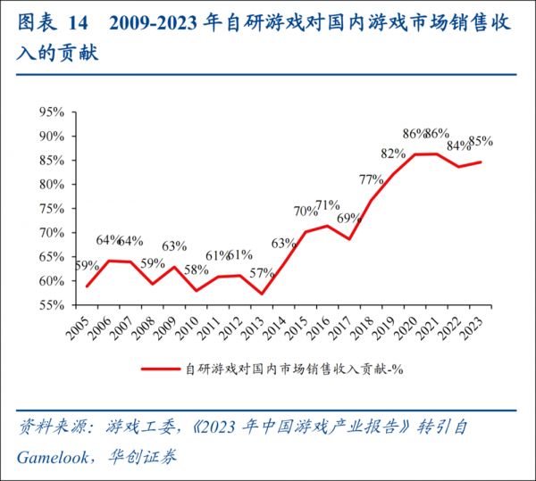 中国游戏市场从最初的传奇类/大话西游类端游在2010年向页游时代迈进,在2013年之后又进入手游时代,彼时市场规模突破1000亿,同时国内自研游戏也迈上新台阶,国内游戏从早期的代理类模式向自研类进一步发展,逐步摆脱了早期国内游戏产业更多以海外代理为主而被批评原创能力不足的问题。