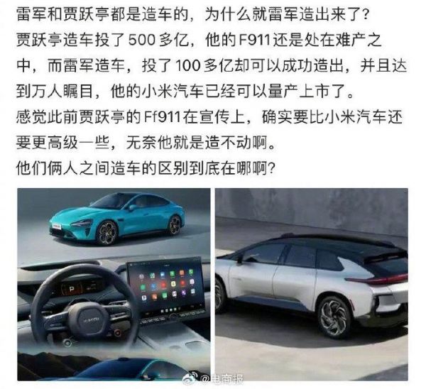 贾跃亭和雷军都是造车的,为什么贾跃亭十年都没量产…