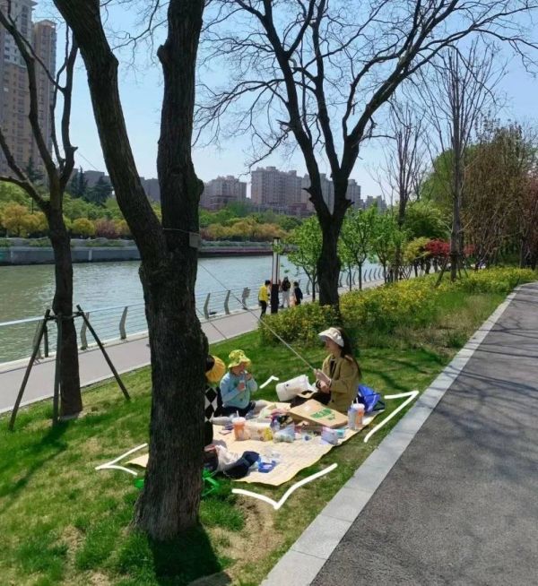 苏州河公园里,人们甚至随意在路边野餐/图源:@Oskarkar
