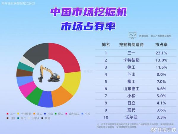 卡特彼勒作为世界顶级工程机械制造商,凭借其先进的技术和全面的产品线在中国市场占有重要席位,尤其在高端市场和大型工程项目中,卡特彼勒挖掘机因出色的耐用性和高可靠性获得了用户的广泛认可。