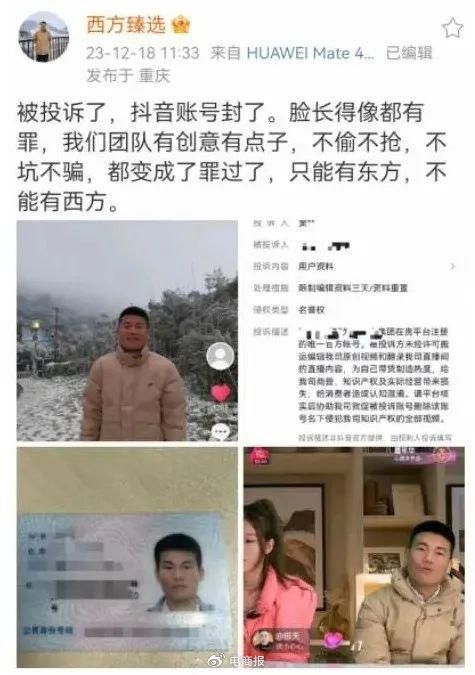 只可惜,这样的“好日子”还没过上两天,“西方臻选”账号就因涉及仿冒假冒和不当蹭热行为,被抖音封禁处理。
